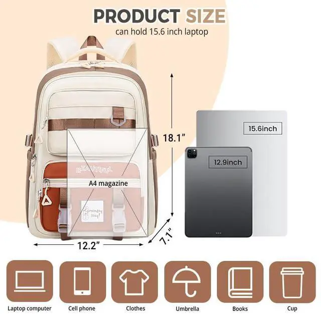 Large Capacity: This attractive backpack measures 12.6"x 18.1"x 7.1"(L x H x W) and features multiple compartments to comfortably fit laptops up to 15.6 inches, as well as two expandable side pockets for ample storage space