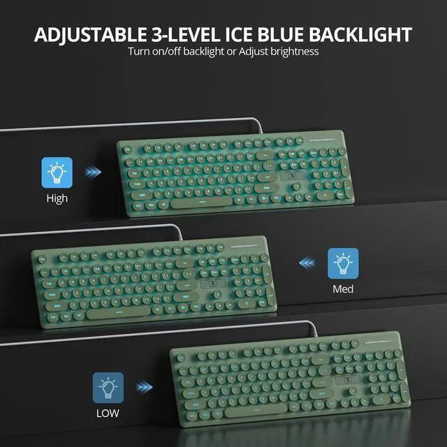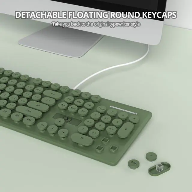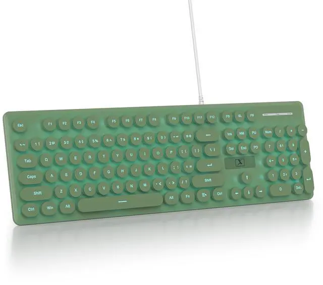 Typewriter Style Keyboard with Round Keycaps - Adopting a retro design, this green membrane keyboard has 104 round backlit keycaps, perfectly integrating modern technology and classic elements, adding a fashionable touch to your PC, laptop, or desktop. Allowing you to enjoy nostalgic time in work and entertainment.