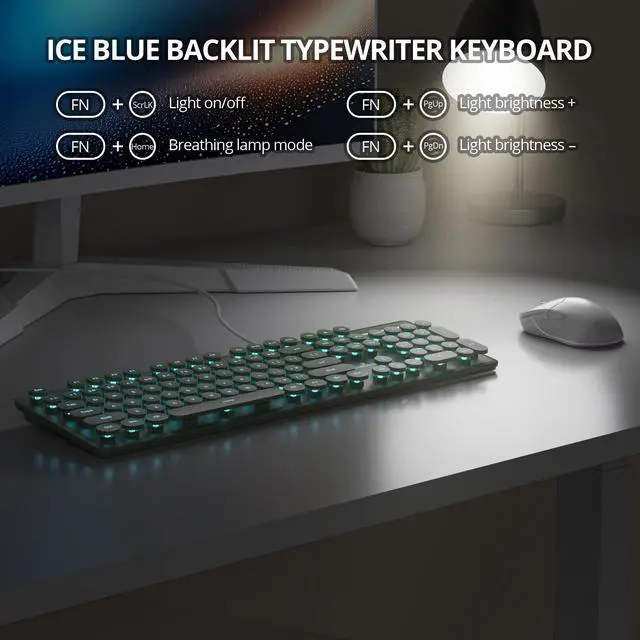 Adjustable LED Backlit Keyboard - Equipped with Blue LED Backlit, the LED computer keyboard can be clearly visible even in dim environments, providing you with comfortable visual enjoyment and enhancing the accuracy of game operations. Backlit can choose to turn on/off and adjust brightness.