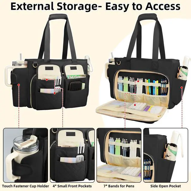 4 Convenient Carrying WaysThis teacher tote bag with compartments comes with an adjustable sho