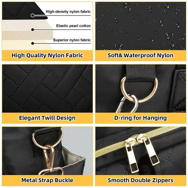 Soft& Waterproof Nylon FabricThe large teacher utility tote bag is made of heavy-duty nylon fabric and elastic pearl cotton padding inside, which can fully protect your laptop and teacher stuff from dust, scratches, and collisions. A removable pad provided is thicked to protect the bottom.