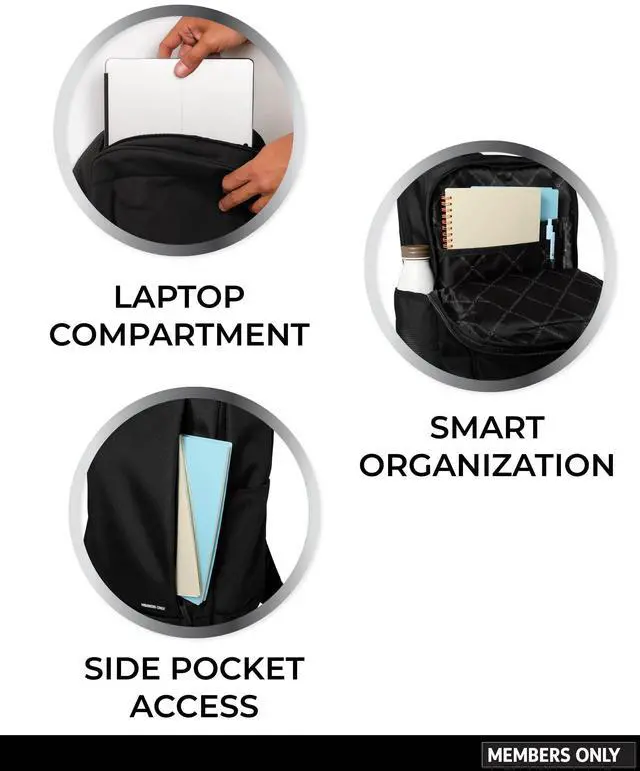Carry your school, work, and travel essentials in sleek, functional style with the black Members Only black laptop backpack. Designed with multiple compartments, this modern backpack features an interior padded sleeve that securely fits up to a 15-inch laptop, all enclosed with a wraparound top zip and lined in Members Onlys signature logo print.