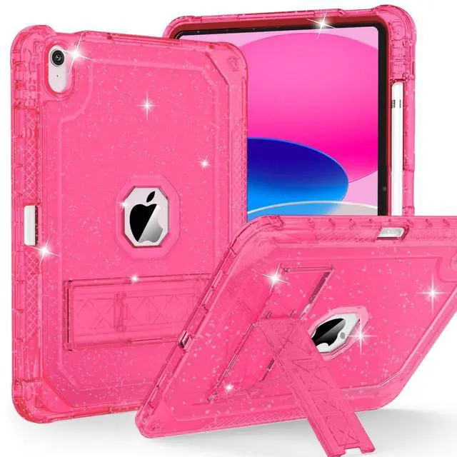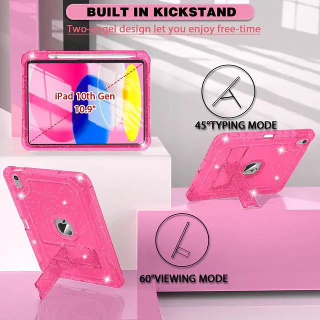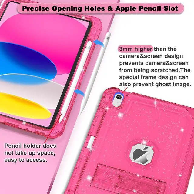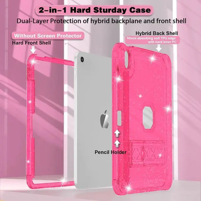 ZoneFoker Case for iPad 11-inch (A16) 2025 / iPad 10th Gen 10.9 inch 2022, Heavy Duty Shockproof Rugged with Pencil Holder, 11th / 10th Translucent Cover with Kickstand Kids, Hot Pink Glitter