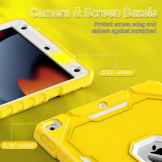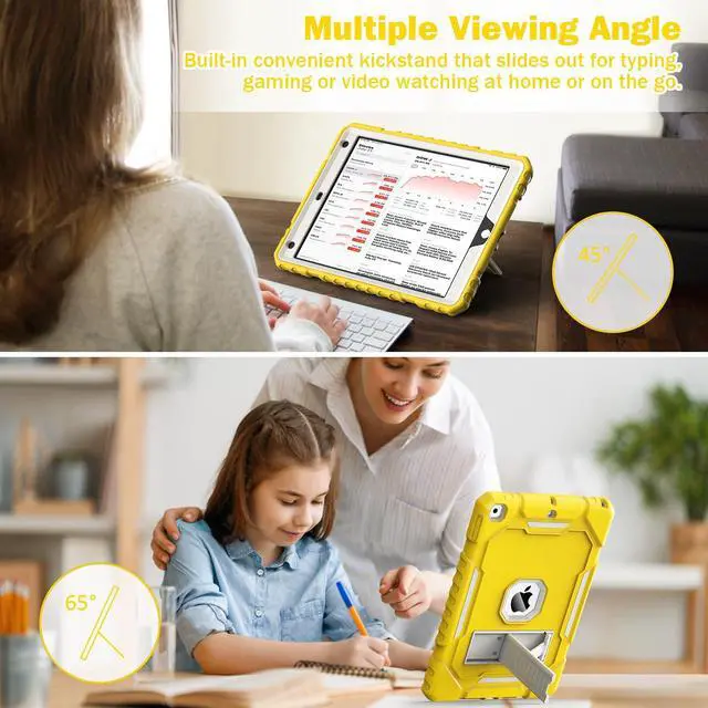 Grifobes Case for iPad 9th/8th/7th Generation 10.2 Inch (2021/2020/2019), Kick Stand Heavy Duty Shockproof Rugged Protective 10.2" Cover for iPad 9 8 7 Gen for Kids Girls Women (Yellow)