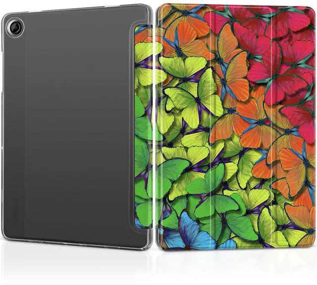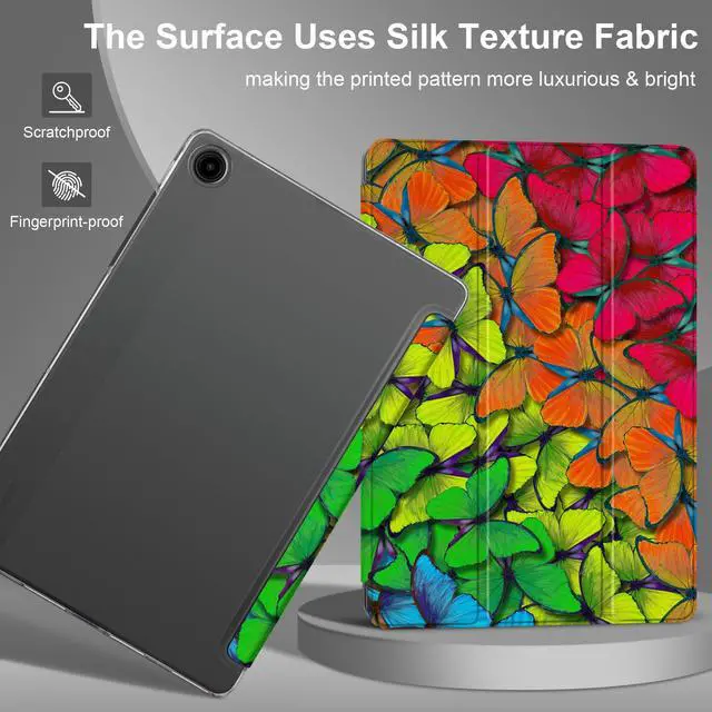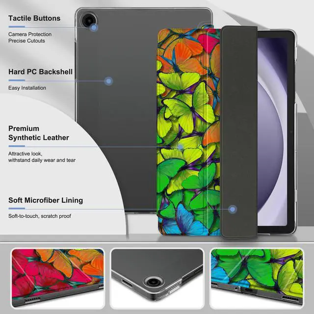 MEEgoodo for Samsung Galaxy Tab A9 Plus 11 inch Case 2024 2023 (Fit Model SM-X210/X216/X218), A9+ Tablet Cases with Silk Texture & PC Clear Back Cover, Rainbow Butterflies