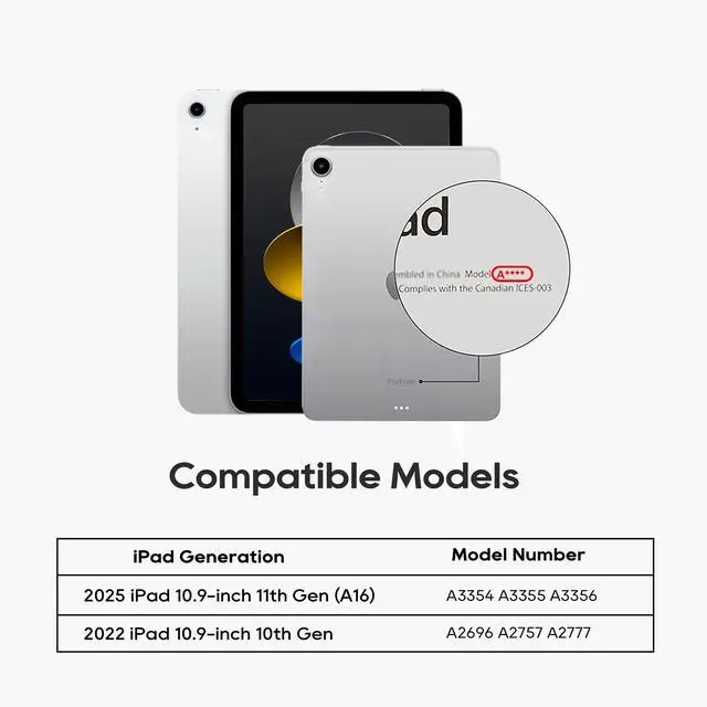 Compatibility: edaiser detachable keyboard case is perfectly compatible with Apple 2025 iPad 11th (A16) generation [A3354 A3355 A3356] and 2022 Apple iPad 10th- A2696 A2777 A2757].
