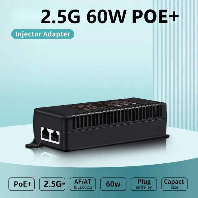 2.5 Gigabit SpeedThis PoE power supply is equipped with 2.5 Gigabit Ethernet input port and 1 PoE 2.5 Gigabit Ethernet output port at 10/100/1000Mbps each ,for high-speed bidirectional Ethernet communication at up to 5 Gbps.