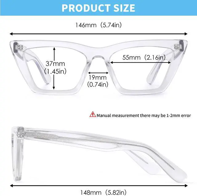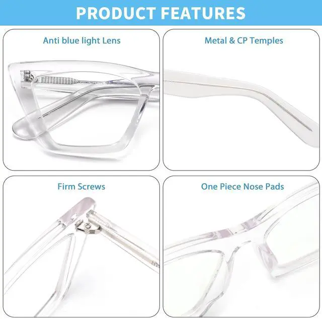 • GLINDAR Cat Eye Blue Light Blocking Glasses Vintage Narrow Square Computer Eyeglasses Acetate Frame Clear