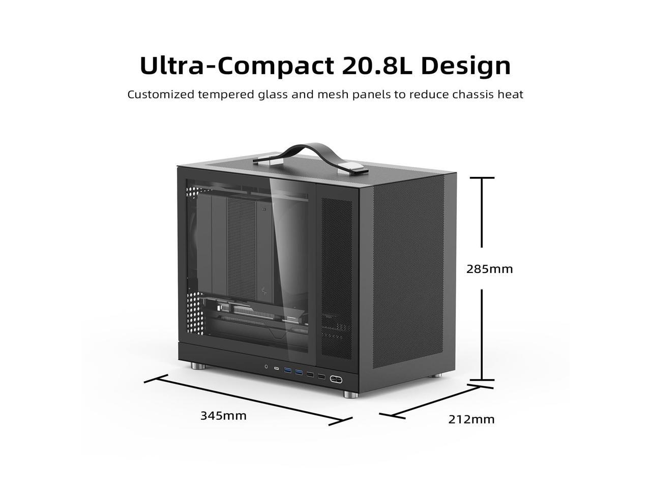 Shiny Snake G350 20.8L MATX Mesh PC Case - Support MATX Back-Connect/BTF MB, ATX PSU, 340mm GPU, 165mm Cooler, Tempered Glass Side Panel with Type-C, Compatible with up to 5 Cooling Fans - Black