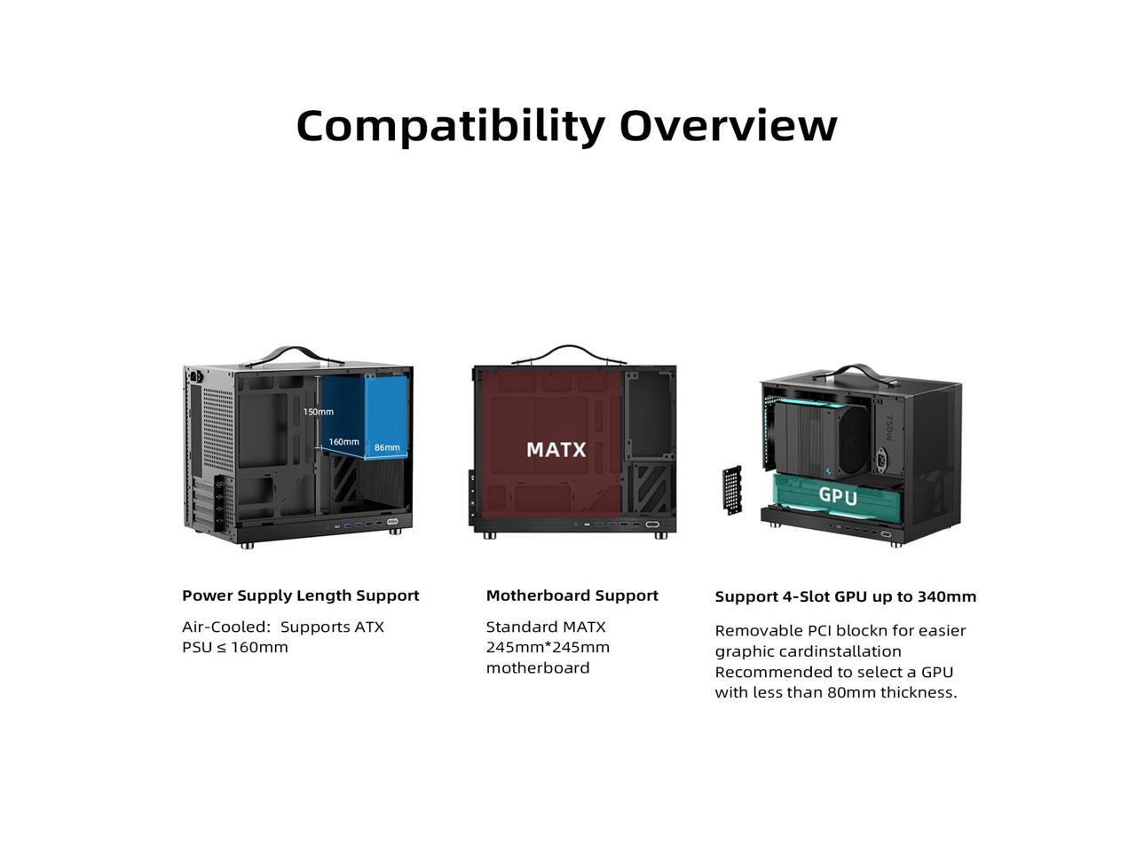 - Flagship Hardware UniversalitySeamlessly houses M-ATX motherboards (including reverse-connector designs) and 340mm flagship GPUs with full 16cm ATX PSU compatibility. Intelligent spatial engineering eliminates component conflicts.