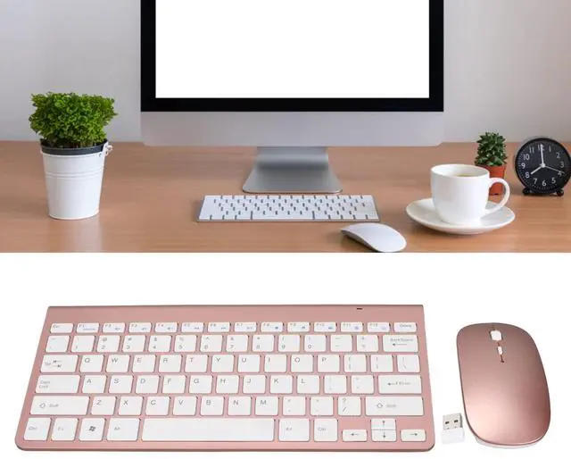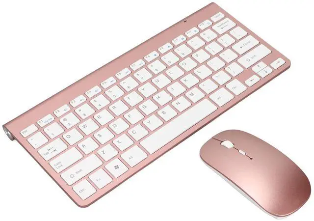 Keyboard Mouse Set 2.4G USB Thin Ergonomic Mute for Computer (Rose Gold)
