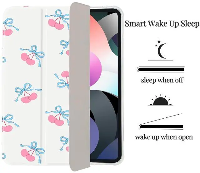 Girly Cute Bow Cherry Case for iPad 11 inch (A16 Chip) 2025 Generation 11th/iPad 10.9 inch 2022 10th Gen with Pencil Holder and Auto Sleep/Wake,White Leather Soft TPU Back Shell Stand Cover
