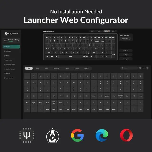 Customizable QMK Firmware - Experience advanced control with QMK firmware, enabling key remapping, macros, and shortcuts. Paired with the Keychron Launcher web app, you can customize every key to create the personalized layout for work or play, enhancing both efficiency and comfort.