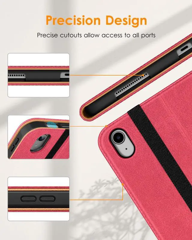 Number: A2757/A2777/A2696). Not compatible with any other model ^^ Built-in Pencil Holder - Securely carries and protects your pencil wherever you go. A hole has been designed at the back of the pencil holder that you can easily push pencil out without taking off your iPad 11/10 case ^^ Magnetic Smart Cover - Support Auto Wake/Sleep, built-in leather hand strap(one-handed operation) and external elastic band enhances magnetic closure ^^ Multi Function - Multiple horizontal bracket angles for comfortable watching movie or typing. Features front document card pocket to keep notes, cash, cards ^^ Premium Material - Exterior is made of premium synthetic leather, lined with microfiber provide full protection for your iPad 10th Generation, against impacts, drops and scratches