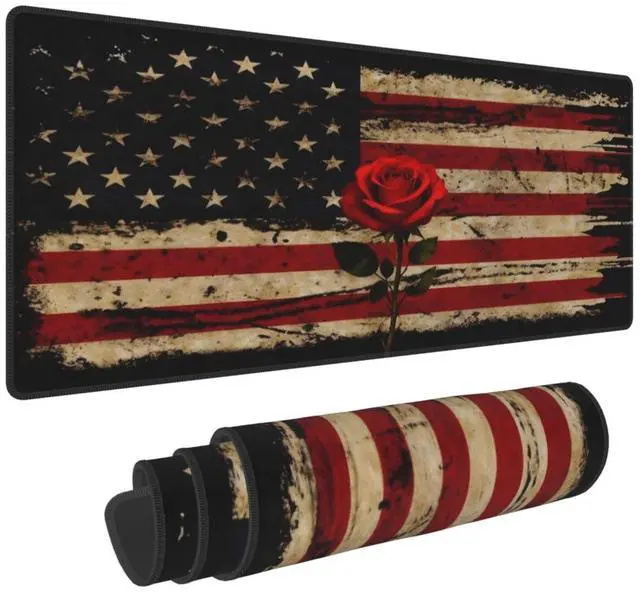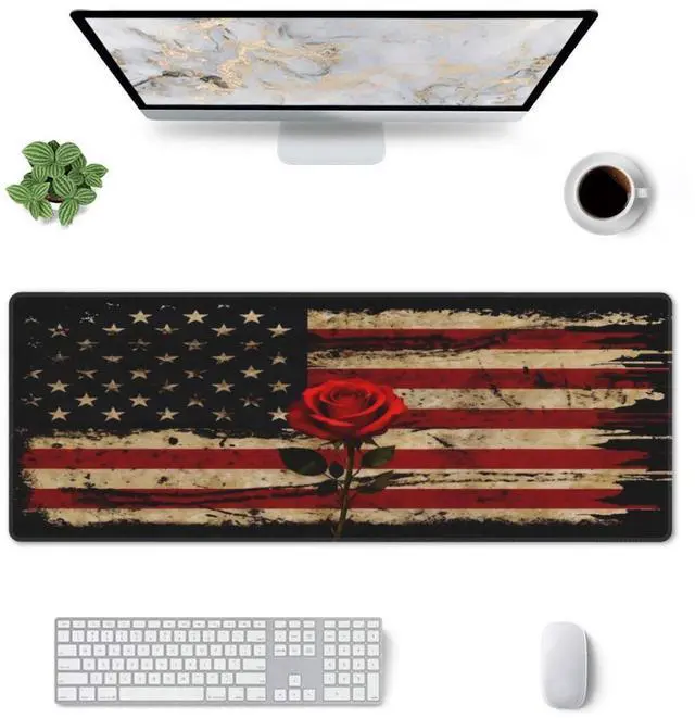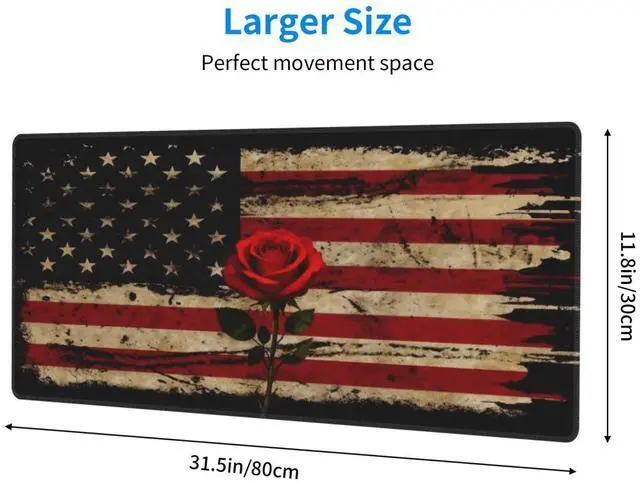 CANFLASHION American Flag Mouse Pad,Office Desk Mat 31.5"11.8",Large Gaming Mouse Pad with Rose Design, XL Extended Waterproof Desk Pad for Computer with Non-Slip Rubber Base300 * 800 * 3mm