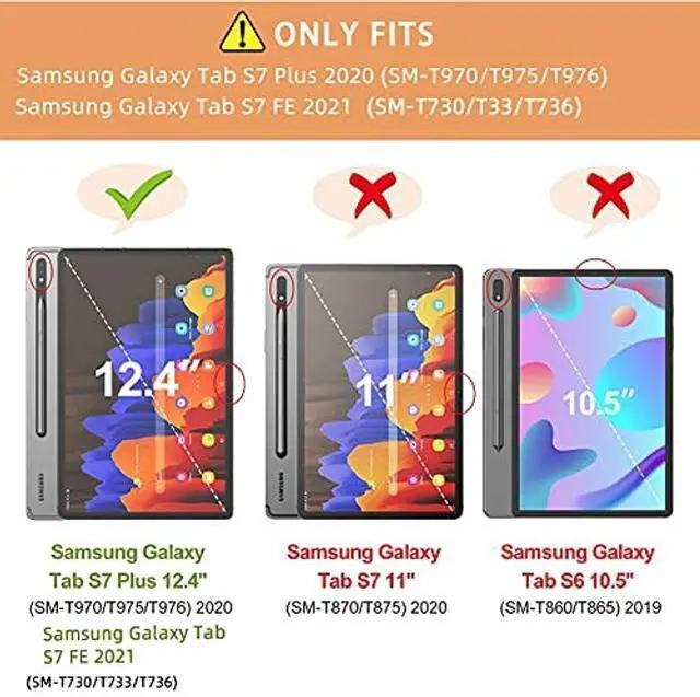 Compatible: Only compatible with Samsung Galaxy Tab S7 FE 12.4 inch 2021, Versions: SM-T730/T733/T736 Samsung Galaxy Tab S7+/S7 Plus 12.4 inch 2020, SM-T970/T976 Samsung Galaxy Tab S8+ 12.4 inchVersions: SM-X800/X806