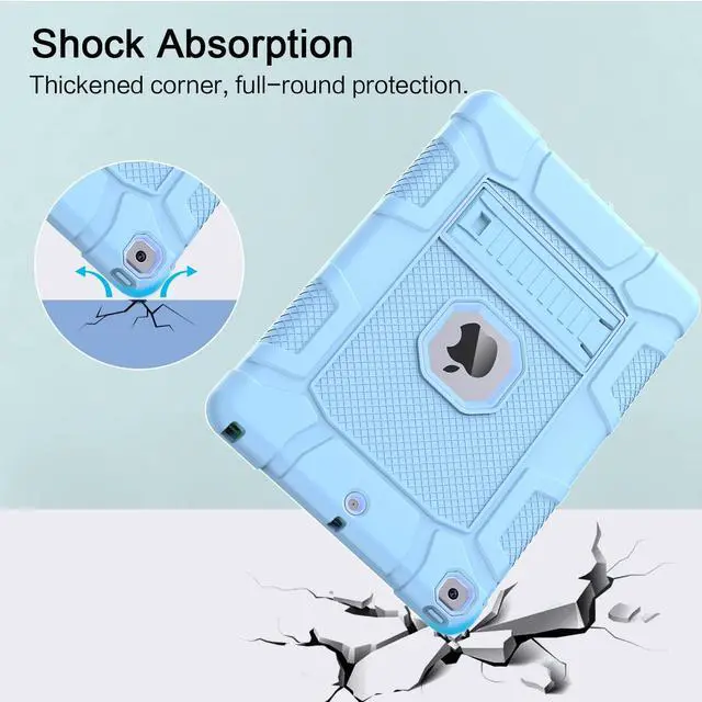 Compatible Model: A2602/A2603/A2604/A2605/A2270/ A2428/ A2429/ A2430/ A2197/ A2198/A2200. [No Screen Protector]DO NOT fit other iPad. ^^ Three-layer structure of premium shock-absorbing TPU and durable hard polycarbonate provide a perfect protection against accidental drops, scratches, bumps and shock. ^^ Super sturdy and Easy To Carry = Absolutely Kids Friendly. ^^ Functional kickstand allows easy access to your favorite shows, movies, and games while on the go. ^^ It's easy to access all buttons, speakers, cameras and sensors through the precisely-cut openings.