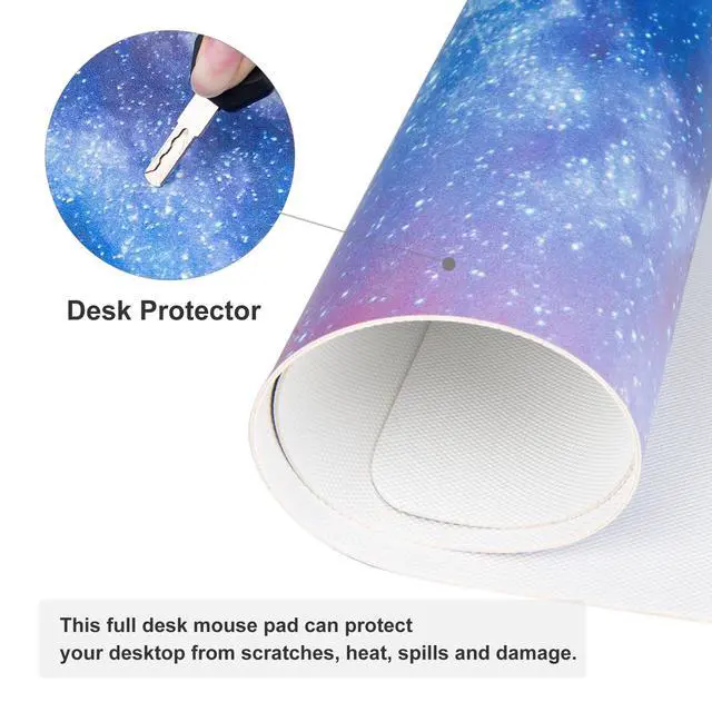 Easy to clean, just wipe with a wet cloth or tissue. ^^ Durable Non Slip Material - Dense PU leather material makes this big mouse mat stay in place on the desktop, providing stable operation of the mouse and keyboard. ^^ Smooth Surface - Smooth surface allows fast mouse movement while maintaining excellent accuracy and control. Premium material provides maximum comfort for your wrist while enjoy writing, typing, browsing, mouse sliding, gaming, and even sleeping on this mouse pad. ^^ Available in a variety of awesome patterns and vibrant colors for more desk decor choices.