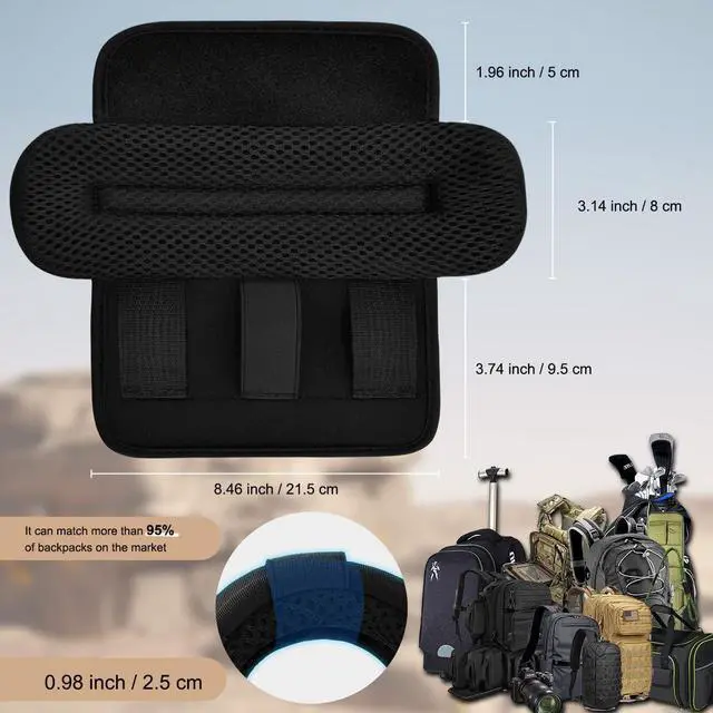 Pad More WideThe Replacement Shoulder Pad is 21.5 cm long and 8 cm wide and 2.5 cm thick, Fits Over Most Fabric Guitar Straps, Backpack, Laptop straps Luggage straps, Crossbody straps etc. ^^ Shoulder ProtectionThe shoulder pad is made of premium memory foam. Adjust with velcro, Detachable shoulder pad cover the entire shoulder. When your backpack is heavy, The replacement shoulder pad cushions the pressure of the backpack and makes your shoulder feel comfortable. ^^ Moisture WickingElastic neoprene and air foam double layers design for shock absorption and breathable and wicks away sweat to allow your shoulder to breath.
