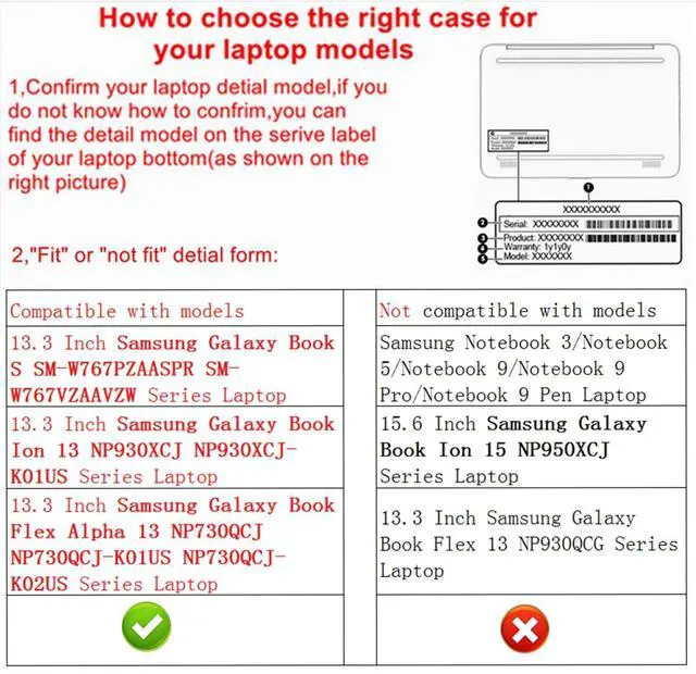 This case not a universal laptop bag, each case are only suitable for some especially laptop models. It is especially designed for Samsung Galaxy Chromebook 2 XE530QDA/Galaxy Book S SM-W767PZAASPR SM-W767VZAAVZW/ Galaxy Book Ion 13 NP930XCJ NP930XCJ-K01US/ Galaxy Book Flex Alpha 13 NP730QCJ NP730QCJ-K01US/ Galaxy Book Flex 2 Alpha 13 NP730QDA-KA1US &case for ASUS ZenBook 13 UX325JA UX325JA-AB51 UX325JA-XB51 UX325EA-XH74/ ZenBook 13 OLED UM325UA-DS71 13.3" Laptop.