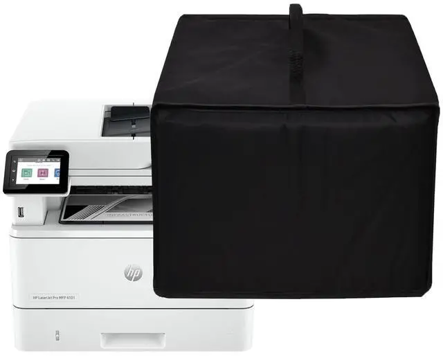 PRINTER COVER SIZEFits printers up to (DWH) 16.9 x 18.1 x 12.6 in (43 x 46 x 32cm) Perfect fit universal dust cover for HP LaserJet Pro MFP 4101fdw Wireless Printer/ HP LaserJet Pro MFP 3101sdw Printer/ HP LaserJet Pro MFP 3101fdw Wireless Printerand other printer models. ^^ HIGH QUALITYCrafted from strong and durable 600D nylon material, for HP printer, Protects your printer from dust and water, preventing particulate lint and moisture vapor from entering and potentially damaging sensitive printer electronics ^^ CONVENIENT DESIGNLightweight one-piece cover design, dust cover has a carrying handle at the top and an open design at the bottom so it can be folded and stored when not in use and takes up little space.