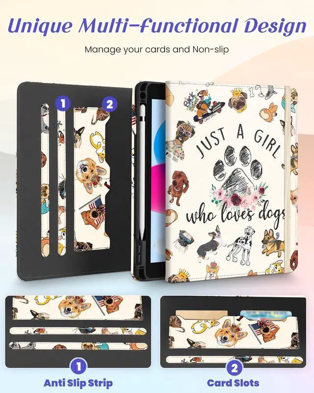 Multi-Functional Design: This for Apple 10th/11th generation case features an elasticized cord strap, which ensures that your tablet closes securely, provides slip or drop protection. It also has two card slots designed to hold your bank cards business cards and other cards