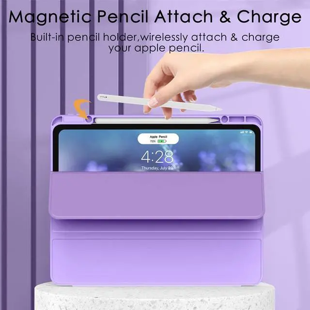 (Tips: Apple Pencil is NOT included! ) ^^ [Auto Wake/Sleep] - Inner magnetic strip, easy snap on and off, can ensure the auto sleep/wake function engages quickly every time. Help you extend the iPad Pro 12.9 inch standby time and reduce the loss of battery ^^ [Two Viewing Angles] - Trifold stand design provides stable support for the iPad Pro 12.9". Two angles provided for satisfying your reading, viewing, typing, or making video calls