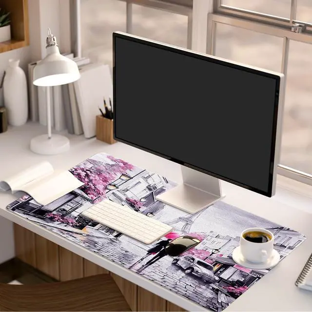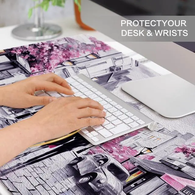 Description: Lokigo Pink Gray Desk Mat, Large Mouse Pad, Paris Eiffel Tower Desk Mat, XXL Gaming Mouse Pad, Big Extended Full Size Mouse Pad, Desktop Desk Matt for Keyboard, Laptop & Computer, 31.5 x 15.7 inchLarge Mouse PadThe full desk mouse pad measures 31.5 x 15.7 inch, with 3mm thickness. Which is big enough to fit your full-sized keyboard, mouse, laptop, or other item on the desk, providing more space for professional gaming or office work.