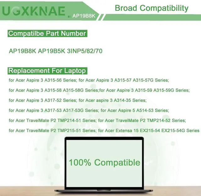 Compatible Laptop Models: fit for Acer Aspire 3 A315-56 Series; fit for Acer Aspire 3 A315-57 A315-57G Series; fit for Acer Aspire 3 A315-58 A315-58G Series; fit for Acer Aspire 3 A315-59 A315-59G Series; fit for Acer Aspire 3 A317-52 Series; fit for Acer aspire 3 A314-35 Series; fit for Acer Aspire 3 A317-53 A317-53G Series; fit for Acer Aspire 5 A514-53 Series; fit for Acer TravelMate P2 TMP214-51 Series; fit for Acer TravelMate P2 TMP214-52 Series; fit for Acer TravelMate P2 TMP215-51 Series; fit for Acer Extensa 15 EX215-54 EX215-54G Series ^^