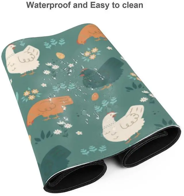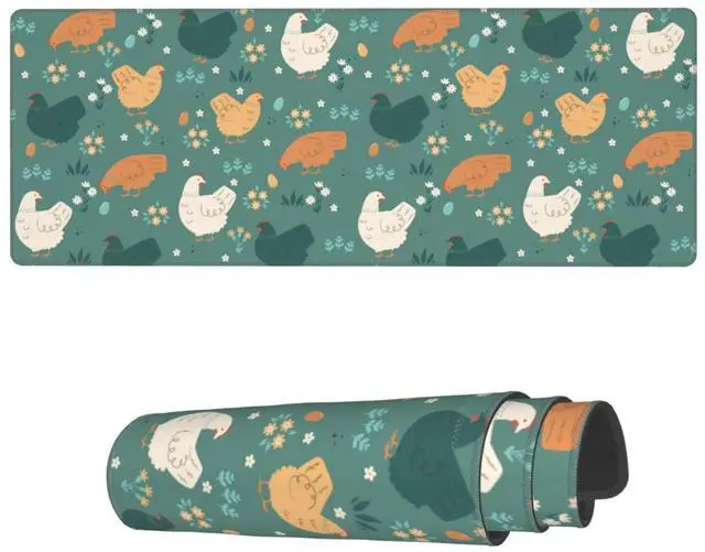 Famame Laptop Mouse Pad Vintage Spring Cute Chickens Eggs Desk Mat with Stitched Edges 31.5X 11.8 inch Non-Slip Large Keyboard Rubber Writing Table Mat for Office Home