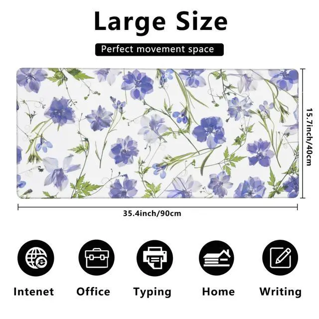 Craft With Edge Stitching To Prevent Fray, Deformation And Degumming ^^ Waterproof and Easy to CleanThe XL Gaming Mouse Pad With Waterproof Coating, Prevents Accidental Damage From Liquid Spillage Such As Water, Coffee, Juice. Ordinary Stains Can Be Wiped Cleanly With a Wet Towel, Easy To Clean Without Delaying Your Work Or Game ^^ Perfect Gift Idea Purple Flower Desk Mat, Personalized Pattern Design. Using Advanced Printing Technology, Keep The Colors Bright And Not Easy To Fade. It Is Not Only a Mouse Pad But Also a Decorative Pad For The Desktop.