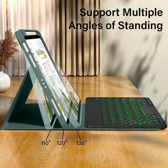 Long Battery Life & Multi Angle SupportBuilt-in industry-high rechargeable Li-polymer battery make the wireless keyboard of this 11/10th gen iPad case with keyboard stand by for more than 3 days after 2-3 hours of full charge. The protective shell can be placed at different tilt angles to adjust the optimal viewing angle, very flexible and user-friendly.