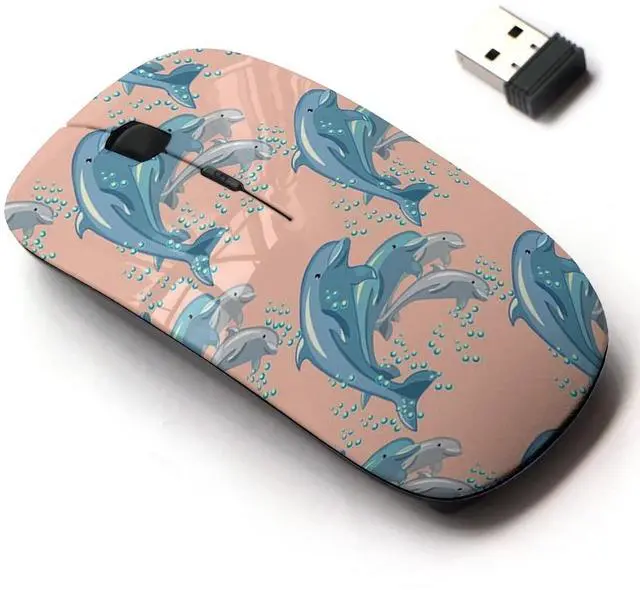 CJCBROES 2.4G Wireless Mouse with Cute Pattern Design for All Laptops and Desktops with Nano Receiver - Fun Dolphin Family