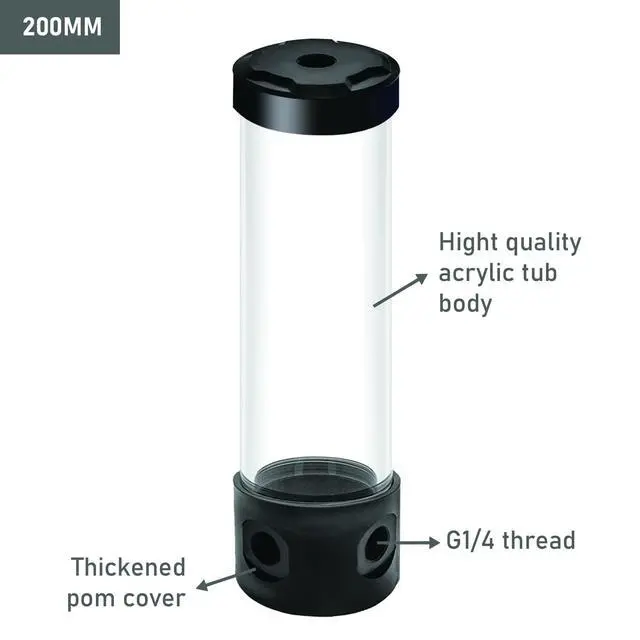 This water cooling valve features a high-flow ball valve structure, ensuring safe, reliable, and efficient control of liquid flow in your system. Made from durable PMMA and POM, the upper and lower covers are crafted from high-temperature-resistant engineering plastics, while the transparent body is acrylic for clear visibility of fluid movement. Equipped with four G1/4" threaded ports, it offers a precise, tight, and leak-free connection. With an outer diameter ranging from 50 mm to 55 mm and available in lengths of 100 mm, 150 mm, 200 mm, 250 mm, 300 mm, and 350 mm, this valve is designed for versatile integration into various water cooling setups.