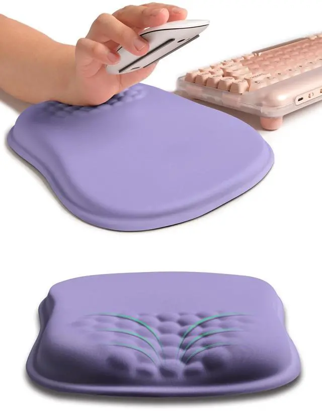 Hokafenle Ergonomic Wrist-Hugging Mouse Pad Wrist Support, U-Shaped Holding Wrist Rest Mousepad for Carpal Tunnel Pain Relief with Cushioned Memory Foam Slope Massage Bulge (10.2x8.3 in,Lavender)