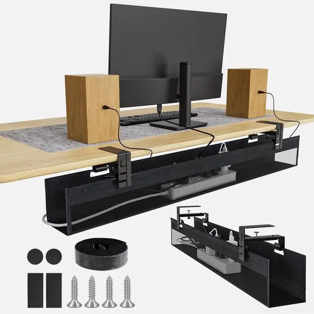 ^^ PREMIUM FABRIC MATERIAL: Nonkky cable management tray is made of premium fabric material that is dust-resistant and fire-retardant, sturdy iron bar support with a load capacity of 40LBS, maximizes the safety of the internal wires and keeps dust out. ^^ EASY INSTALLATION (2