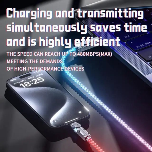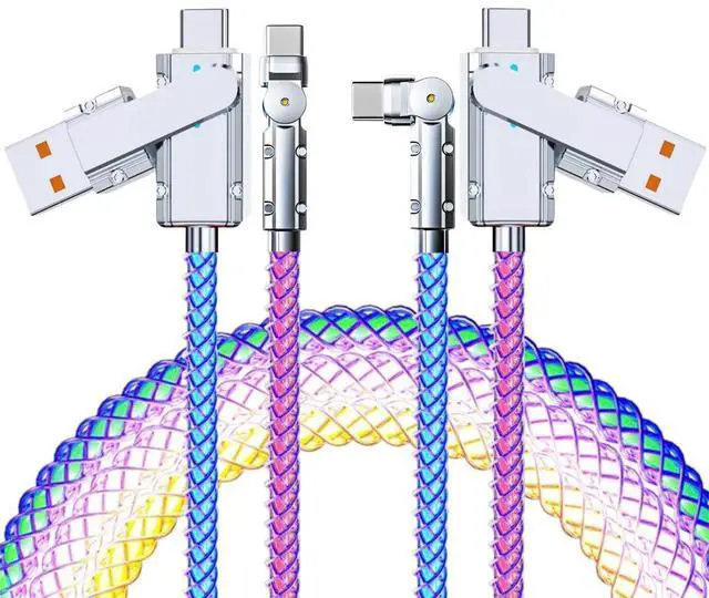 Novative 180 degree head rotation Design: The rgb usb c cable plug with its user-friendly180 degree head rotatio design no more breaking cords from constant bending,to enhance your daily plug-in moments.prioritizes your comfort, curating an effortless connective experience
