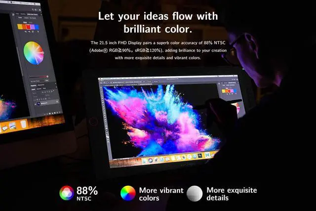 [Easy Cable Connection] - The Artist 22R Pro graphics display supports Type-C to Type-C connection, letting you directly connect your iMac/Mac Book Pro and other Windows computers that support Type-C input to the 22R Pro without using a Type-C to HDMI &USB adapter. (The full-features USB-C cable is sold separately). ^^ [Brilliant QD LCD Screen] - By applying the latest innovation and technology, the XP-Pen Artist 22R Pro Pen Display lets you draw with virtually no parallax and a more precise cursor positioning even at the four corners for an improved drawing experience. The 21.5 -inch FHD Display pairs a superb color accuracy of 88% NTSC (sRGB120%), adding brilliance to your creation with more exquisite details and vibrant colors.