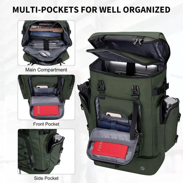 Interior: 4 open pockets, 1 zipper pocket, and a fit 17-inch computer compartment and iPad compartment. Back1 zipper pocket on the back that hides the backpack strap. Make your items neat, orderly, and easy to find. Whether traveling, exercising outdoors, working, gift, it's a great choice.