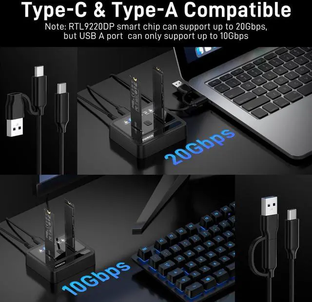 Blazing-Fast 20Gbps Data TransferExperience lightning-speed file transfers that revolutionize your workflow. With a remarkable 20Gbps transfer rate, moving terabytes of data takes minutes. Perfect for backing up critical projects or migrating your entire system, FIDECO NVMe cloning dock ensures you stay ahead of the clock.
