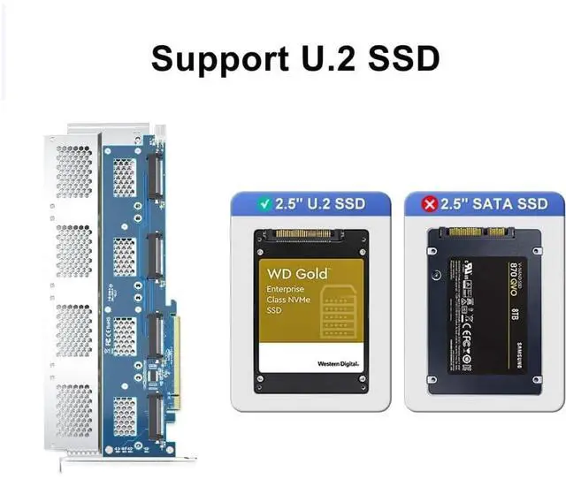 The U. 2 NVMe adapter supports the use of 4x U. 2 NVMe SSDs simultaneously, but the motherboard must be equipped with PCIe bifurcation function, and be able to set PCIe X4X4X4X4 or Hyper M.