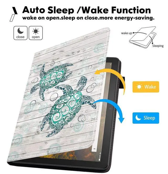 FVAENDHIO Case for Kindle Fire HD 8 & Fire HD 8 Plus Tablet (12th/10th Generation, 2022/2020 Release) - Premium PU Leather Cover with Auto Sleep Wake, Sea Turtle on Rustic Wooden Board
