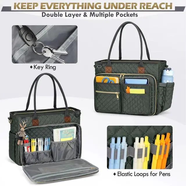 The laptop bag for women also provides multiple ways of carrying, it can serve as a shoulder bag, office bag, laptop carrying bag, or laptop cross-body bag ^^ IDEAL GIFT CHOICE- Laptop tote with combined elegant appearance and practical design. Large capacity and multiple storages make it a great choice to use as a teacher bag, nursing bag, professional work bag, business travel bag, or weekend getaway carry-on bag. Perfect for commuting teachers, tutors, nurses, business ladies, etc. Ideal gift for teachers, nurses, and parents, on any holidays, birthdays, or anniversaries. And also ideal Teacher Appreciation Gifts