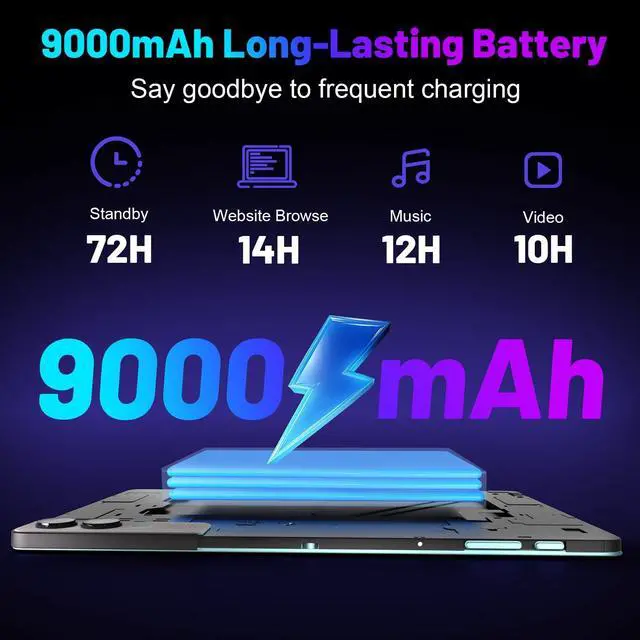 Stereo Surround Sound: Equipped with four high-quality BOX speakers, this telectronic tablet delivers immersive 3D surround sound for movies, gaming, and music. Enjoy crisp highs and deep bass whether youre watching videos or making video calls ^^ 9000mAh Long