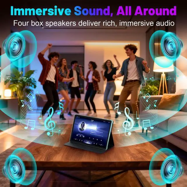 • Quad Speakers with Stereo Surround Sound: Equipped with four high-quality BOX speakers, this telectronic tablet delivers immersive 3D surround sound for movies, gaming, and music. Enjoy crisp highs and deep bass whe