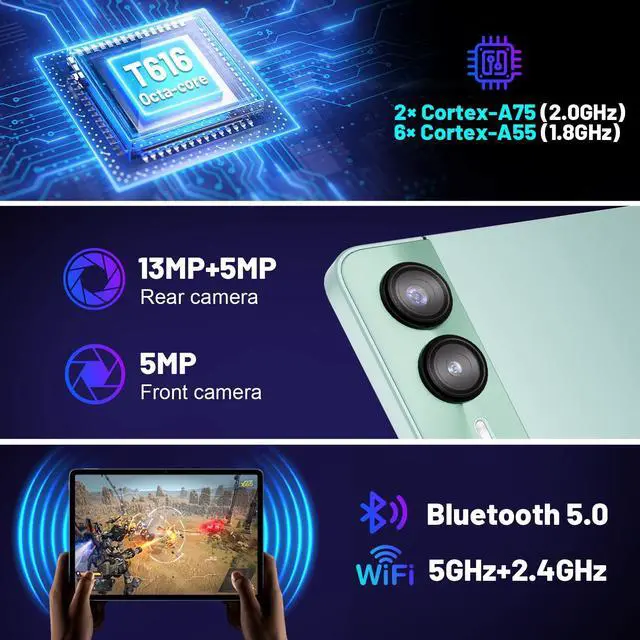 • Android 14 Tablet with Octa-Core Processor: Powered by Android 14 and an octa-core 2.0GHz CPU, this 11 inch tablet delivers smooth multitasking for streaming, gaming, and studying. Enjoy faster app launches and stable performanceperfect for work, school, or travel