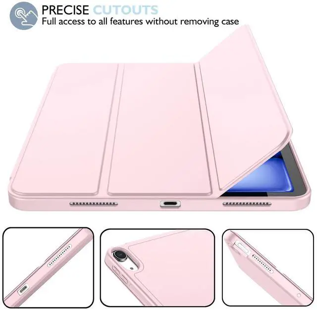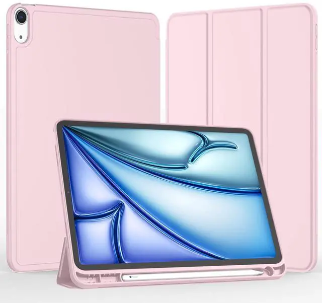 iMieet iPad Air 11-inch M3 (2025) / M2 (2024), iPad Air 5th (2022) / 4th Generation (2020) 10.9 Inch -Trifold Stand Smart Cover with Pencil Holder and Soft TPU Back (Pink)