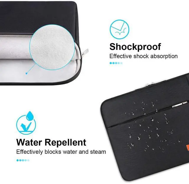 Laptop Protection: Adopt anti-scratch luxurious velour padding and shock-absorbent, high resilience buffer layers, offer a super barrier against accidental bumps and jolts, the laptop sleeve provide a ton of hydrostatic resistance to repel water from penetrating inside, shield your stuff from unexpected coffee spill, equipped with unique two-way zippers in smooth action, reinforced all stress points, ensuring that your valuable electronics is always in encompassing protection.