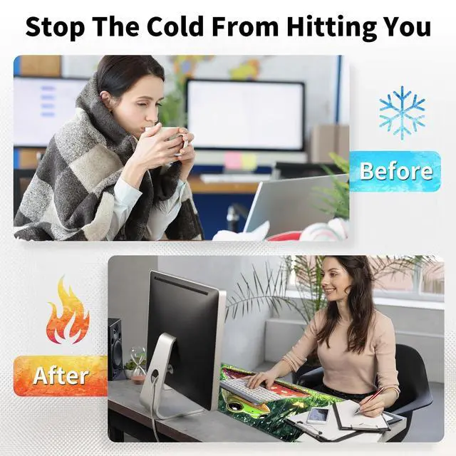 Quickly Warm Mousepad: Carbon crystal heating film material, thermostatic heating, power consumption lower. Make this warm desk mat heated up quickly in 15 seconds. 3.