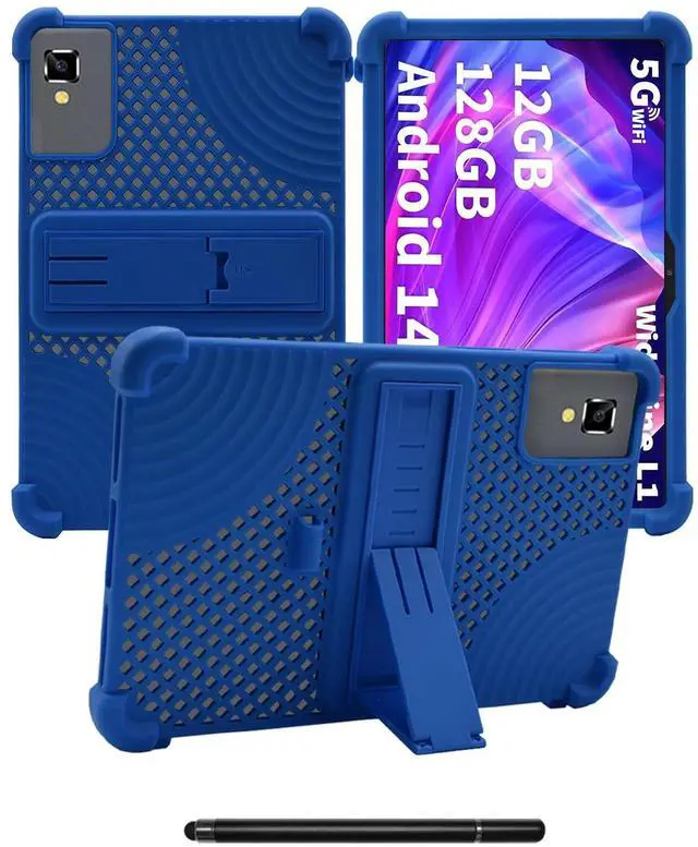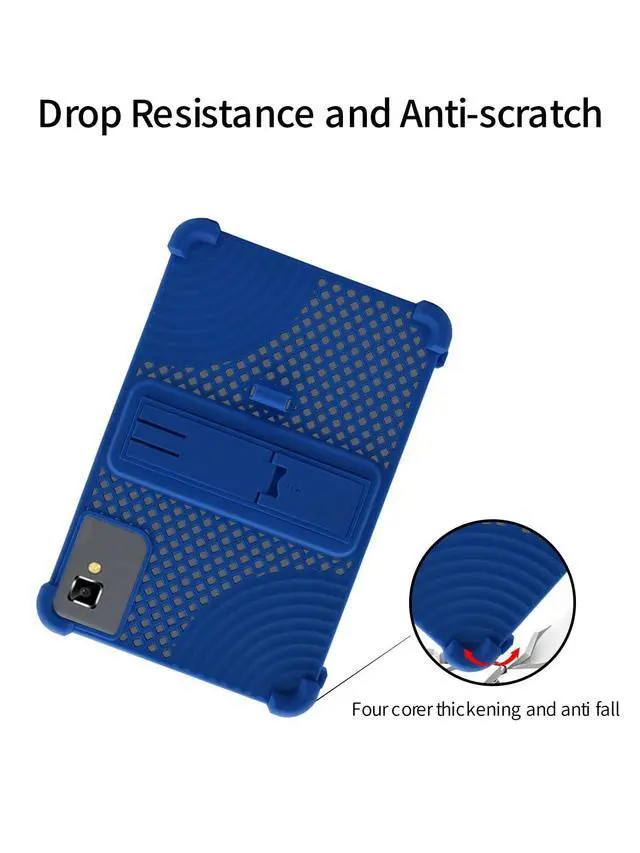 for YLEEBG TAB10 10 inch Android Tablet Case,BOVUGAC Soft Silicone with Capacitive Pen,Heat Dissipation Design,Adjustable Stand,Shockproof,Kids Friendly(Blue)